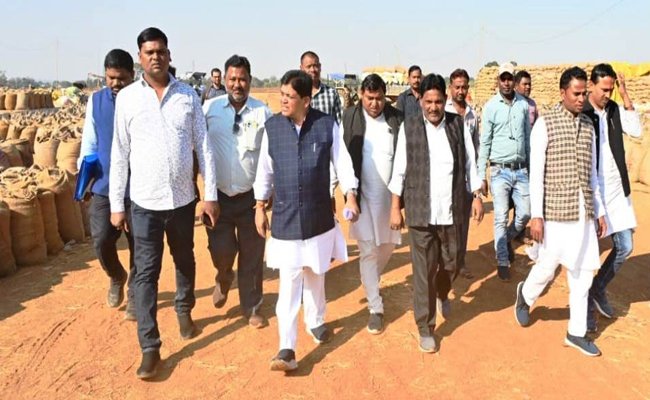 नगरीय प्रशासन मंत्री डॉ. डहरिया ने धान खरीदी केन्द्र का किया औचक निरीक्षण