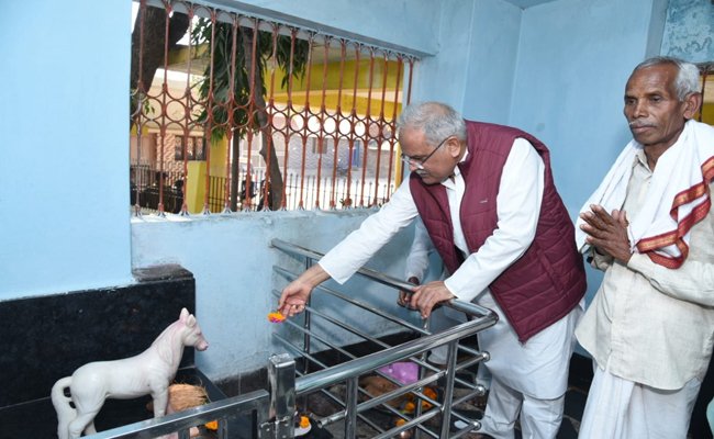 मुख्यमंत्री श्री भूपेश बघेल ने खिसोरा में भगत बाबा और माँ शीतला के दर्शन कर प्रदेशवासियों की सुख-समृद्धि की कामना की