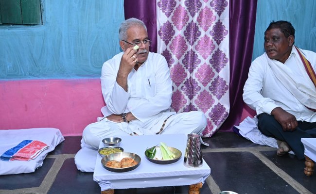 मुख्यमंत्री भोजन करने आदिवासी वनपट्टाधारी किसान के घर पहुंचे