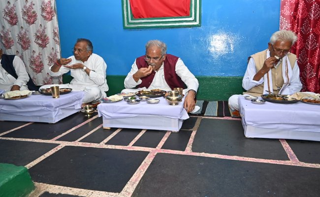 मुख्यमंत्री श्री बघेल ने मन्नूलाल साहू के घर पर किया भोजन
