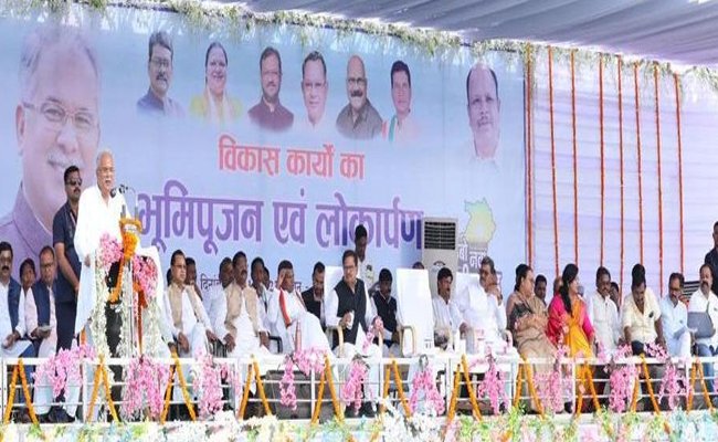मुख्यमंत्री श्री बघेल ने चारामा में आयोजित लोकार्पण और भूमिपूजन कार्यक्रम के मौके पर स्टॉलो का किया अवलोकन