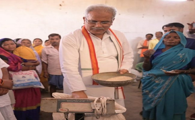 ‘भेंट-मुलाकात‘ अभियान: मुख्यमंत्री ने अपने हाथों से तौलकर हितग्राहियों को दिया राशन