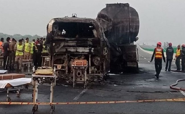 पाकिस्तान: बस और तेल टैंकर के बीच टक्कर, 20 लोगों की दर्दनाक मौत