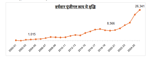 वर्षवार पूंजीगत व्यय में वृद्धि